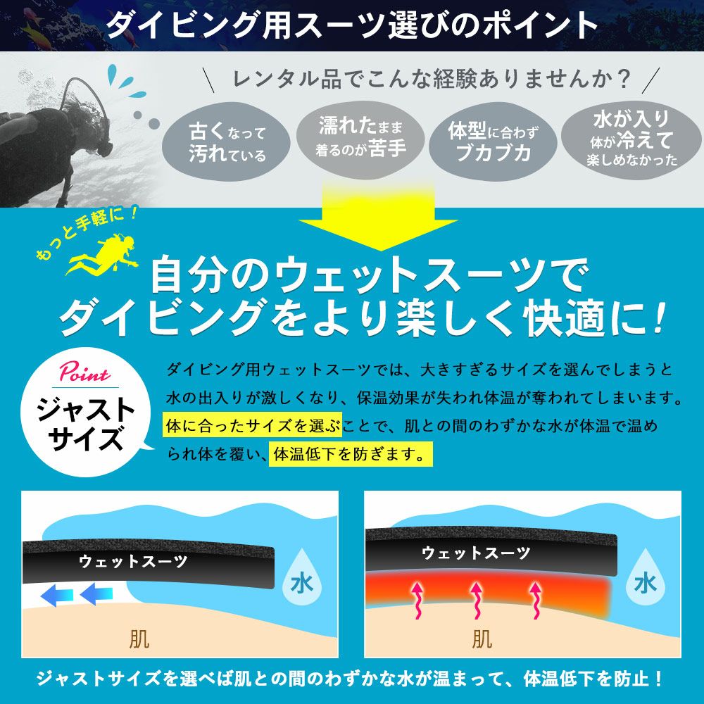 ・RSS SURF…サーフィン初心者の方や予備用としてお勧めのウェットスーツ