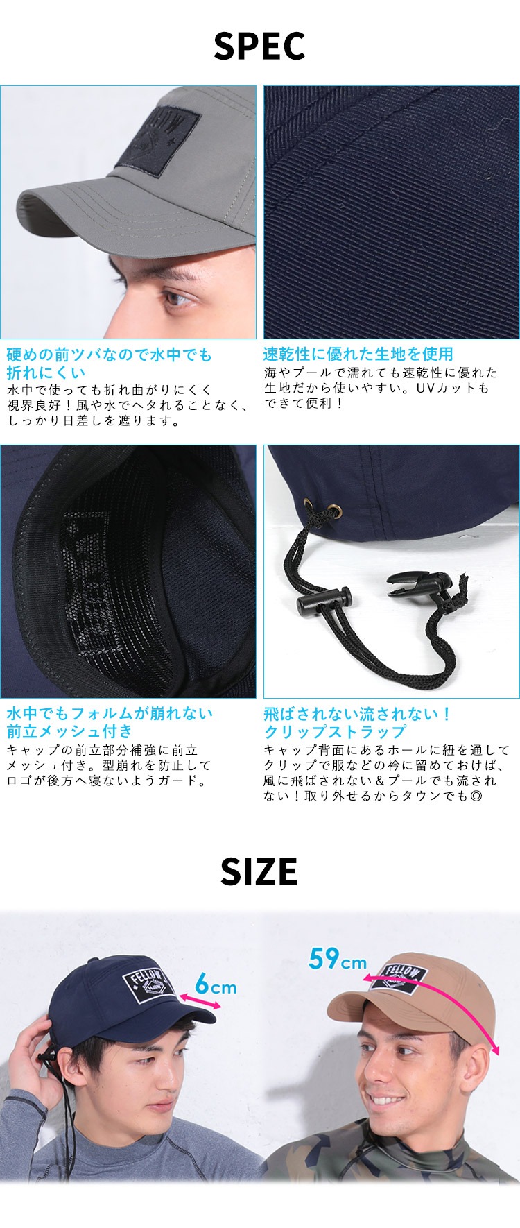 FELLOW メンズ ビーチキャップ 59cm 全5色