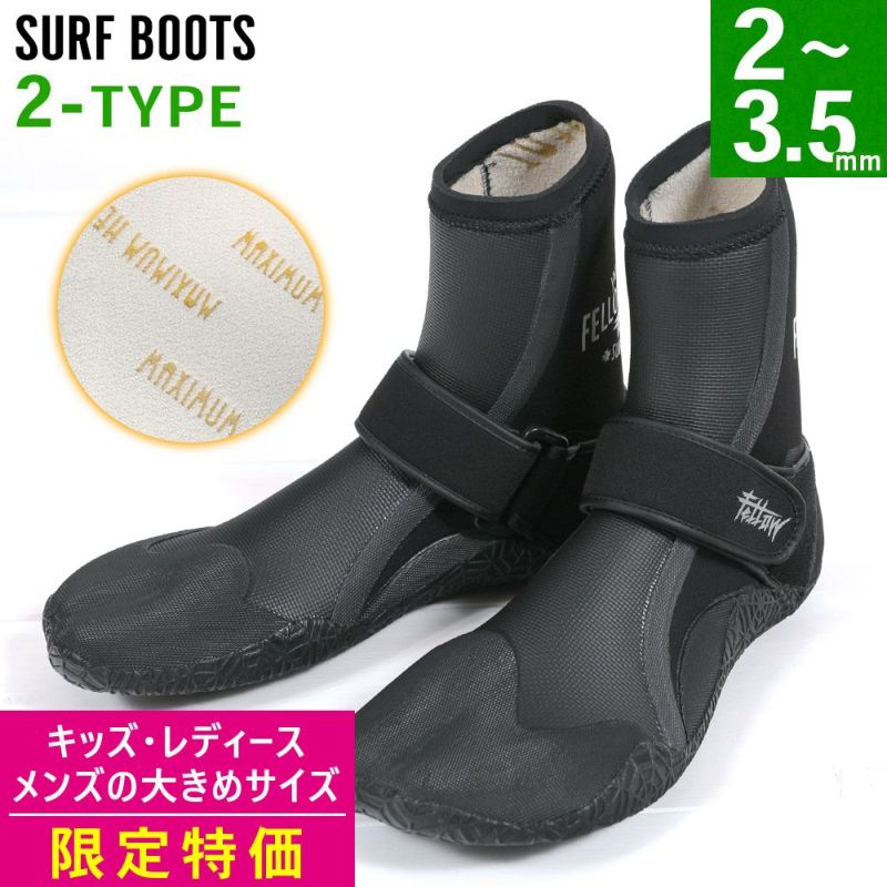 【アウトレット価格】FELLOW サーフブーツ 2mm 3.5mm 19cm・20cm・21cm・22cm・29cm・30cm 全2タイプ