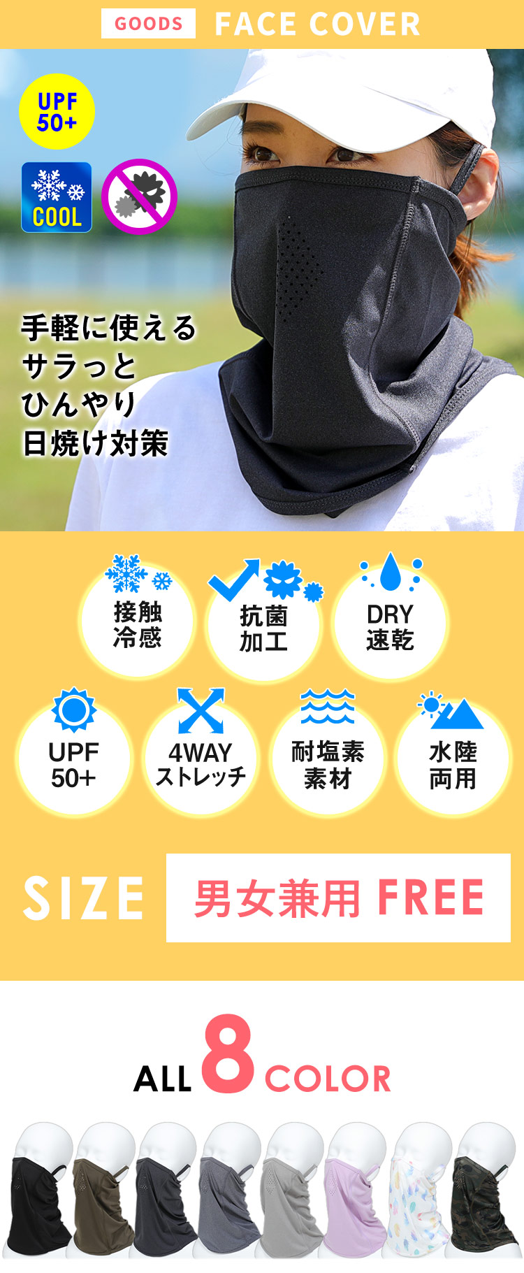 FELLOW ラッシュガード フェイスカバー メンズ レディース フリーサイズ 全8色