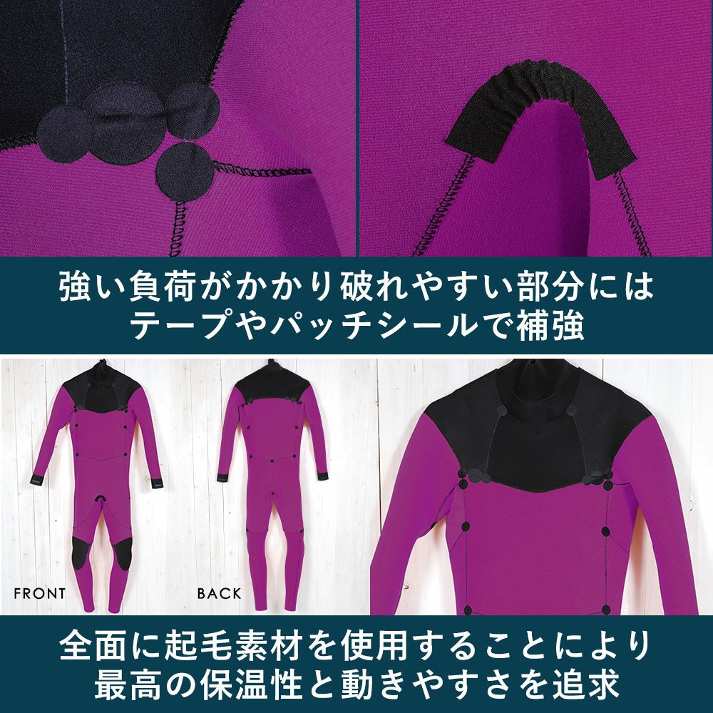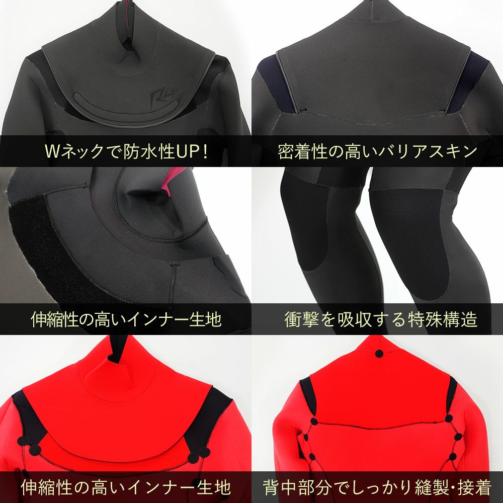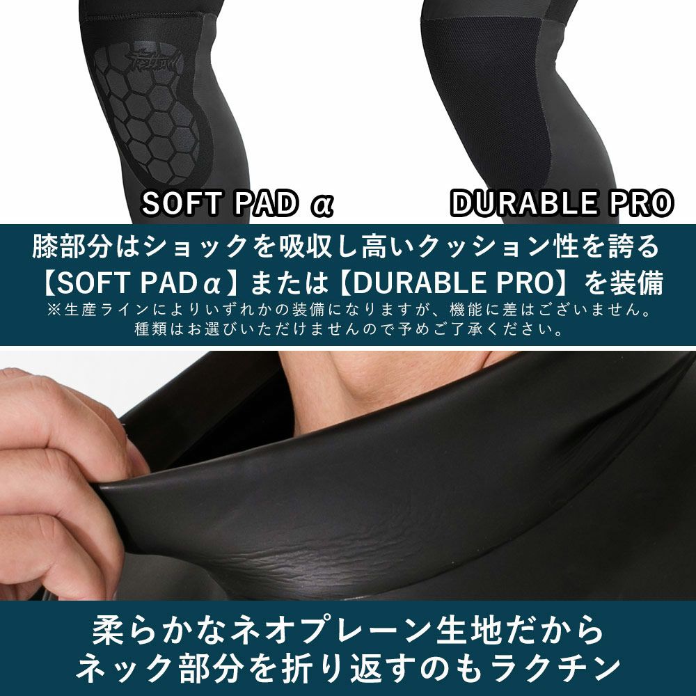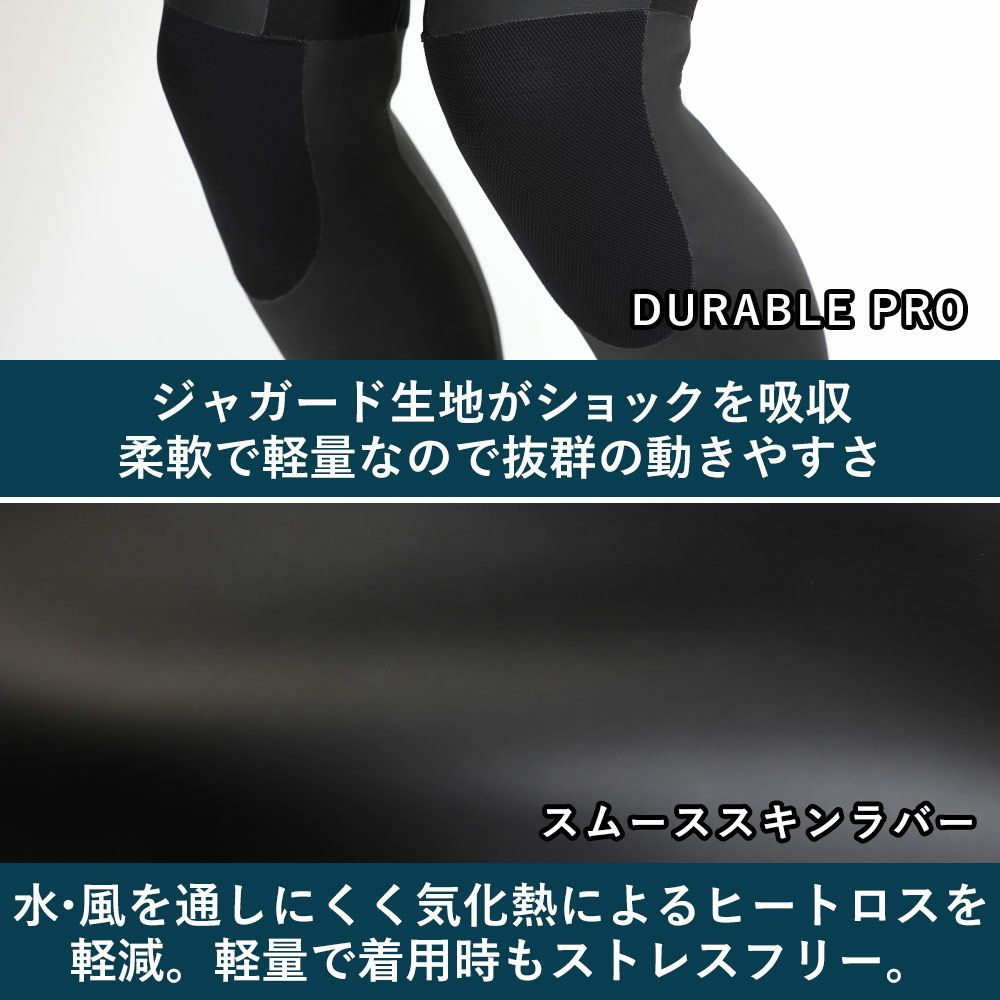 伸縮性に優れたストレッチ素材を使用し、ライディング時の動きを妨げず、長時間のサーフィンでもストレスを軽減します。