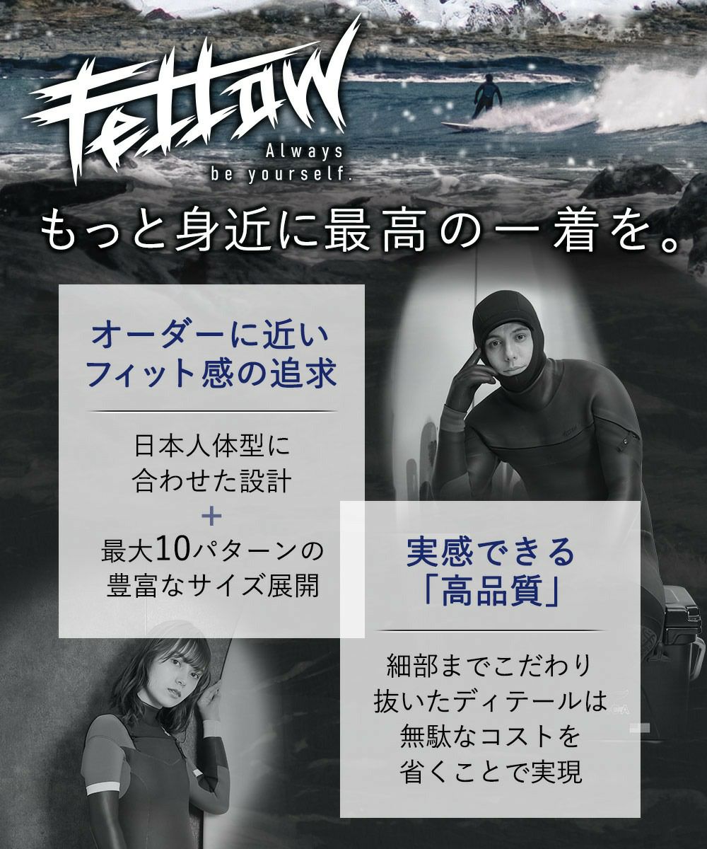 FELLOW メンズ セミドライ バックジップ 5x3mm M~XXLB 全2色