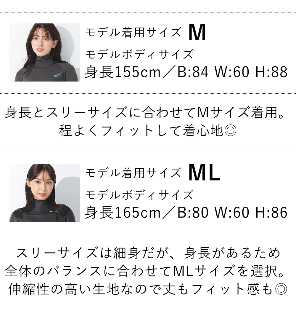 FELLOW レディース タッパー フロントジップ 2mm S~LB 全2色