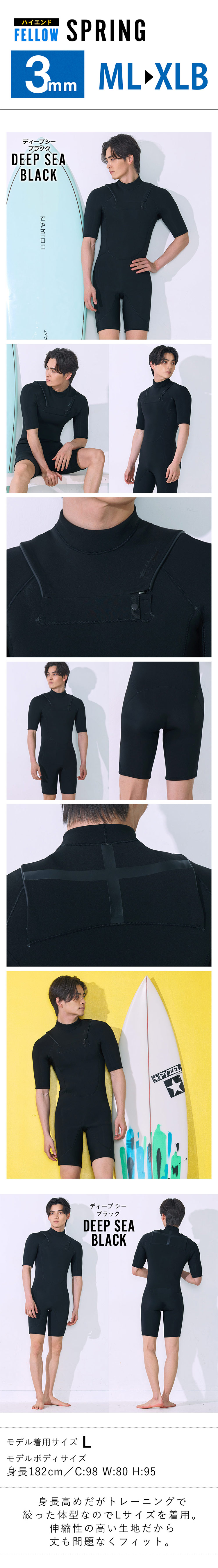 [予約] 新作 FELLOW ウェットスーツ メンズ スプリング チェストジップ 3mm ML~XLB 全1色
