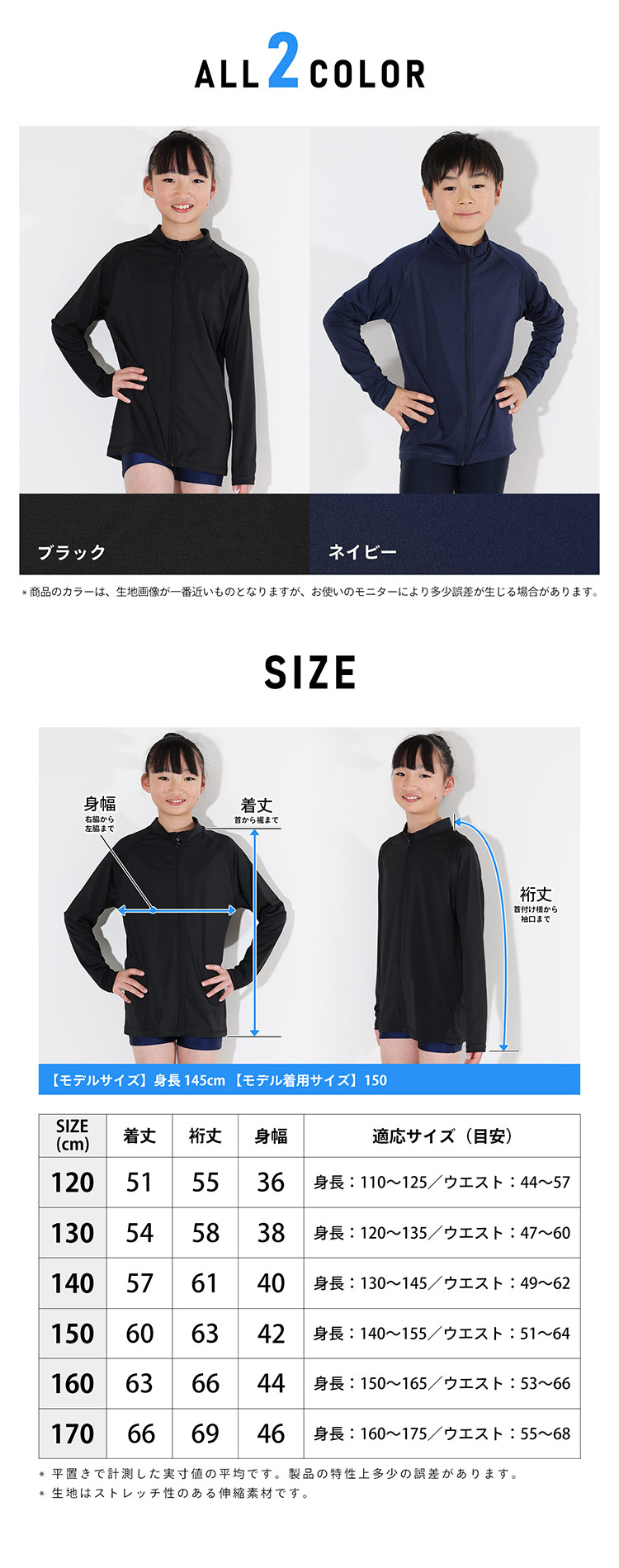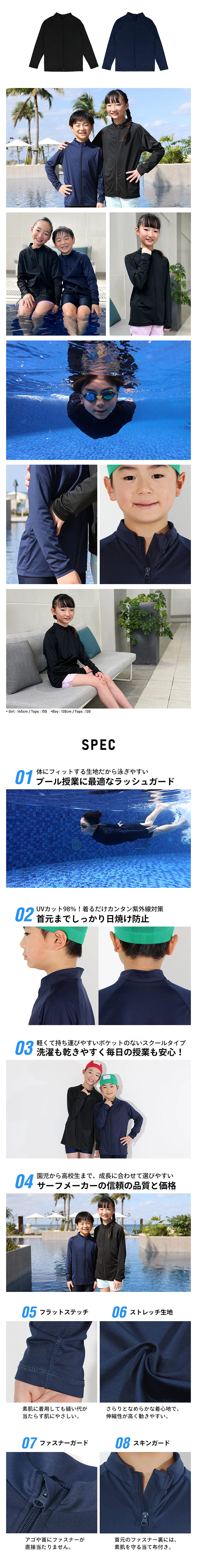 FELLOW キッズ ラッシュガード スクール用ジップアップ 120~170cm 全2色